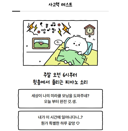 어떤 사고력을 가지고 계신지 궁금하시다면 아래 테스트하기 로 바로 확인 해보실 수 있습니다.