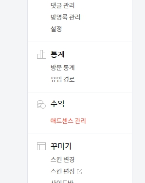 티스토리 왼쪽 메뉴중 수익이라는 메뉴가 있습니다.